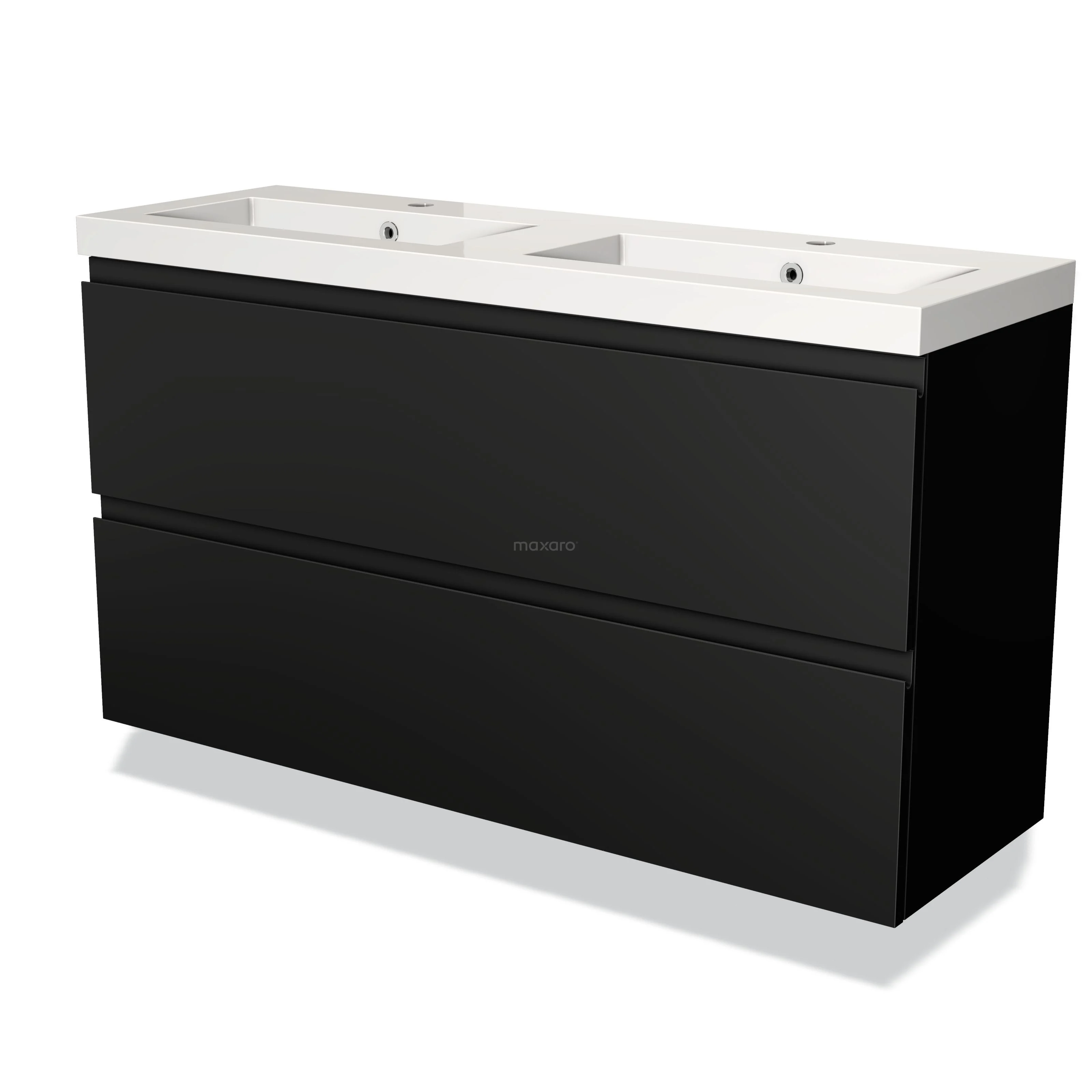 Badmöbel 120cm Modulo Slim Matt Schwarz 2 Schubladen Griffloses Waschbecken Mineralguss