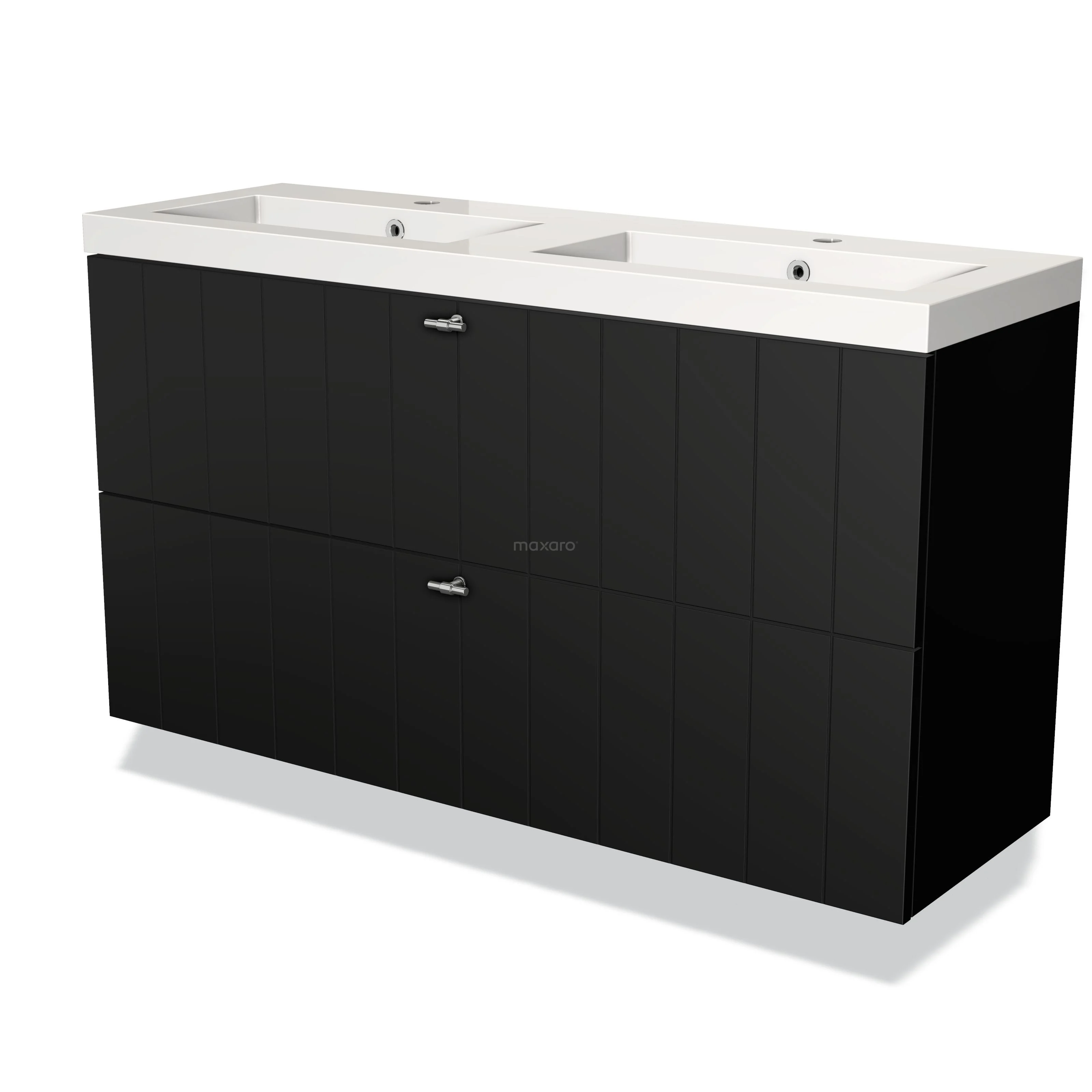 Badmöbel 120cm Modulo Slim Matt Schwarz 2 Schubladen Lattenrost Waschbecken Mineralguss