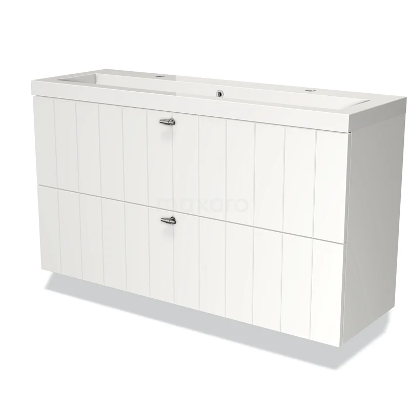 Badmöbel 120cm Modulo Slim Matt Weiß 2 Schubladen Lattenrost Waschbecken Mineralguss
