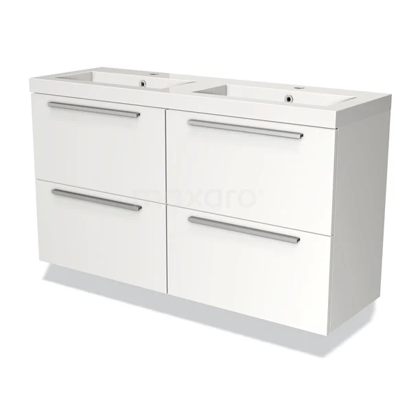 Badmöbel 120cm Modulo Slim Matt Weiß 4 Schubladen Flaches Waschbecken Mineralguss