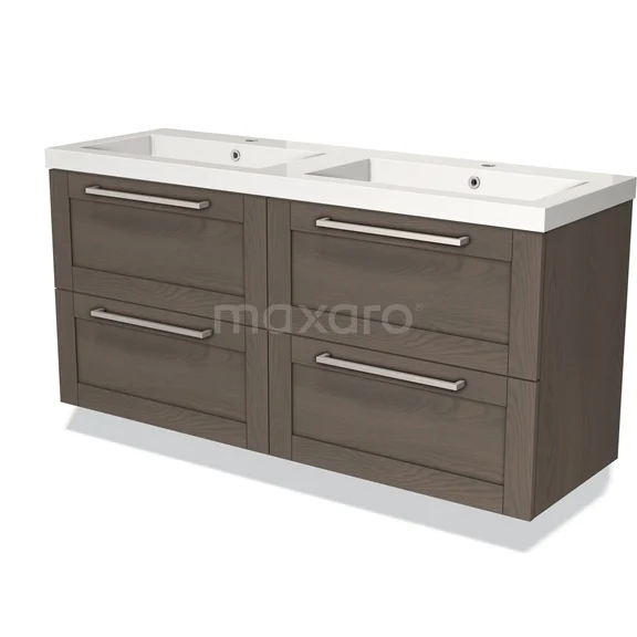 Badmöbel 140 cm Modulo dunkelbraune Eiche 4 Schubladen Rahmen Waschbecken Mineralguss