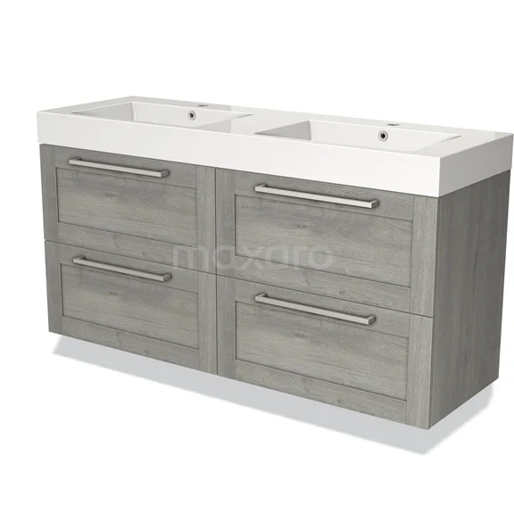 Badmöbel 140 cm Modulo Graue Eiche 4 Schubladen Rahmen Waschbecken Mineralguss
