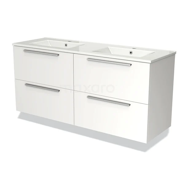 Badmöbel 140 cm Modulo Matt Weiß 4 Schubladen Flaches Waschbecken Keramik
