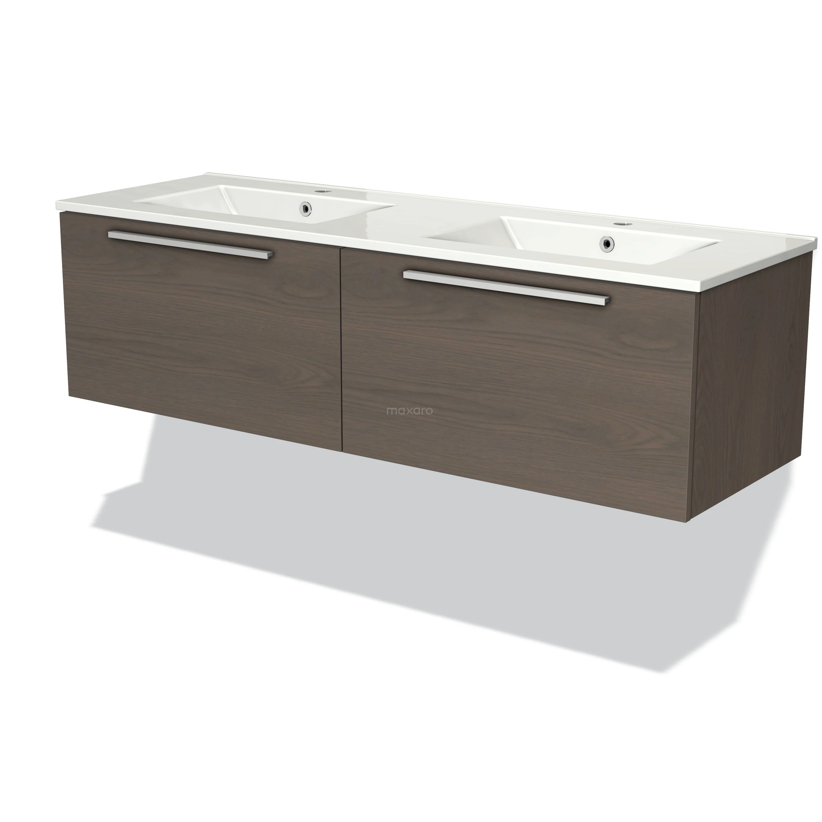 Badmöbel 140cm Modulo dunkelbraune Eiche 2 Schubladen Flaches Waschbecken Keramik