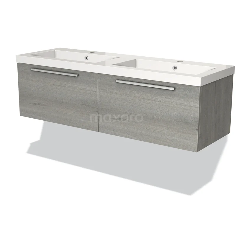 Badmöbel 140cm Modulo Graue Eiche 2 Schubladen Flaches Waschbecken Mineralguss