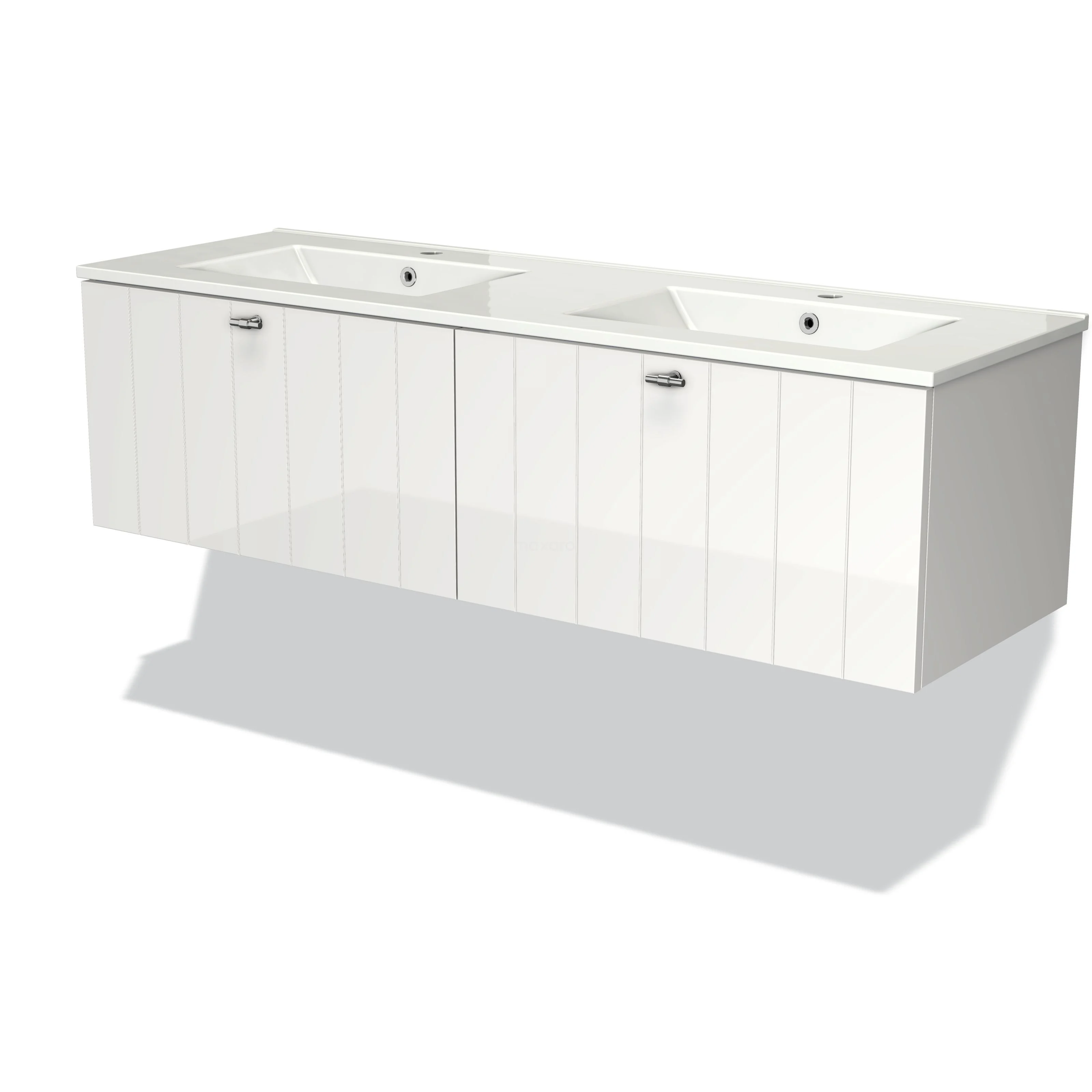 Das bodenstehende Badmöbel 140 cm ist ein zentraler Bestandteil der täglichen Körperpflege wie Schminken, Rasieren oder Zähneputzen. Das Waschbecken hat 2 Hahnlöcher und ist ideal für die gleichzeitige Nutzung durch mehrere Personen. Das Möbel bietet außerdem genügend Platz, um Ihre WC- und Pflegeprodukte ordentlich zu verstauen.