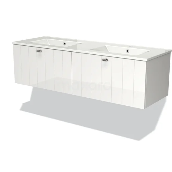 Badmöbel 140cm Modulo Hochglanz Weiß 2 Schubladen Waschbecken aus Keramik