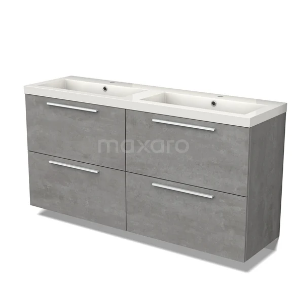 Badmöbel 160cm Modulo hellgrauer Beton 4 hohe Schubladen Flaches Waschbecken Mineralguss