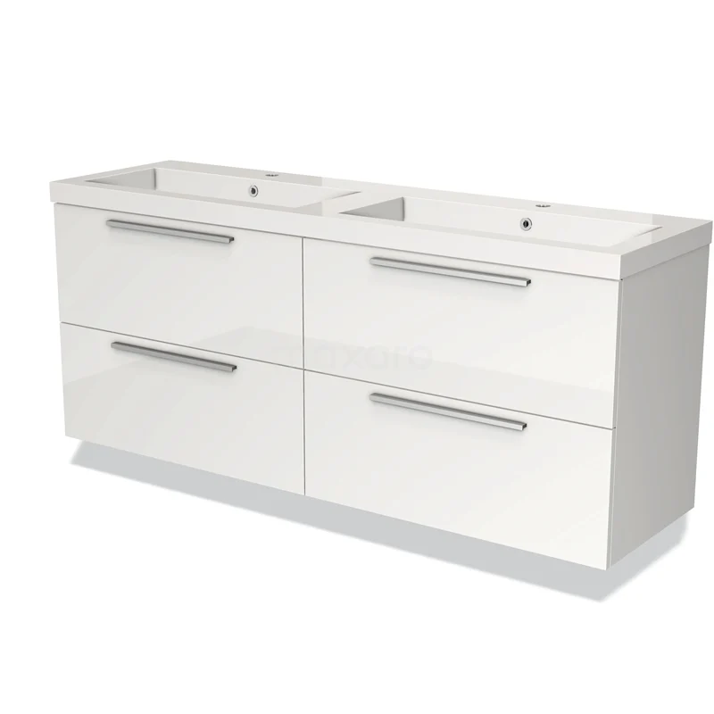 Badmöbel 160cm Modulo Hochglanz Weiß 4 Schubladen Flaches Waschbecken Mineralguss