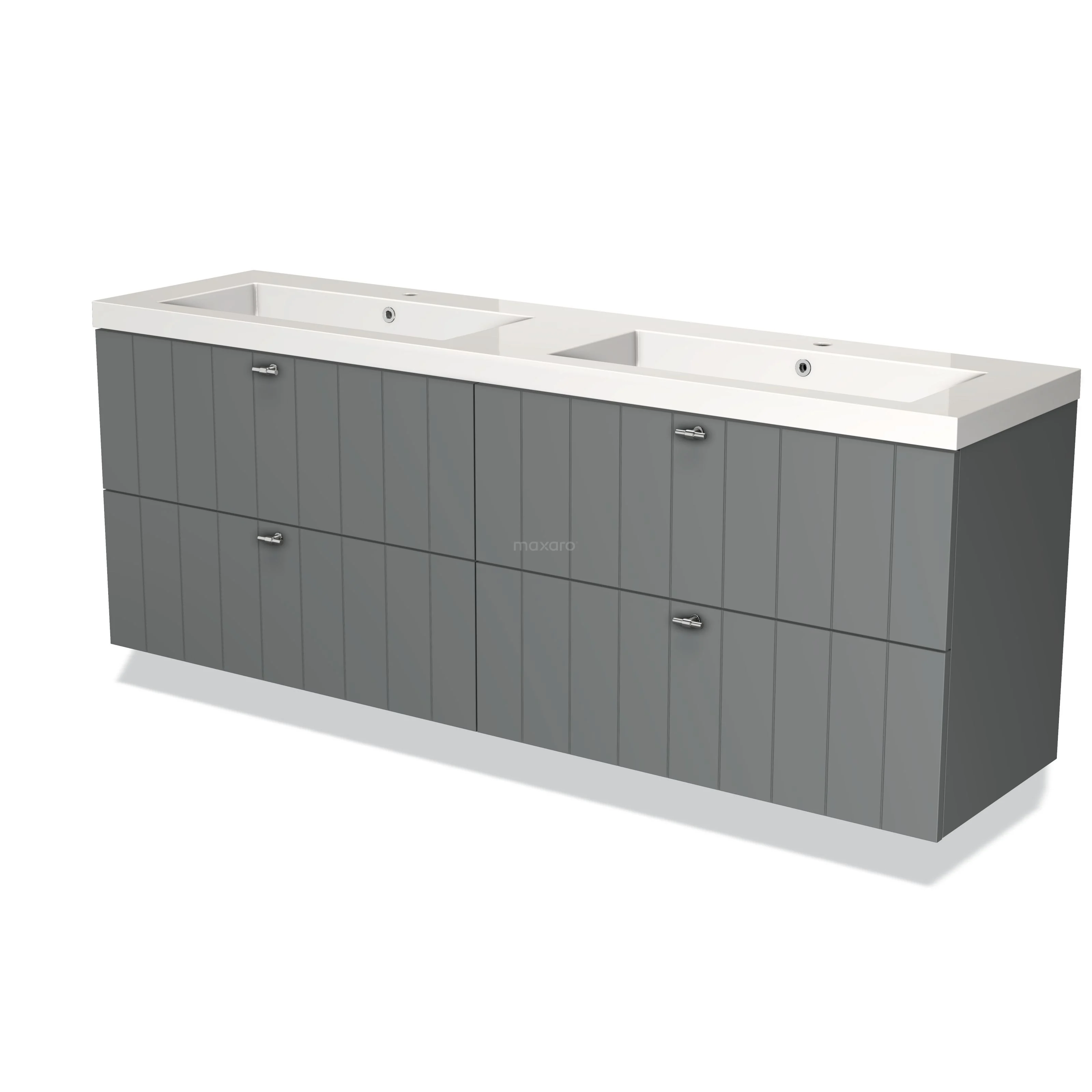 Badmöbel 180cm Modulo Mittelgrau 4 Schubladen Lattenrost Waschbecken Mineralguss