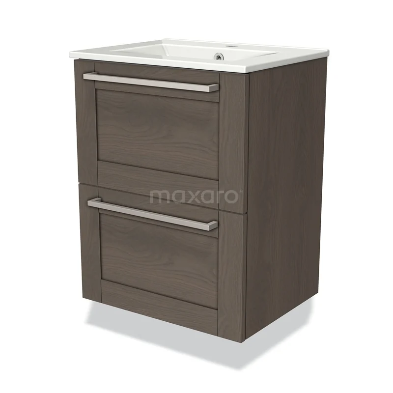 Badmöbel 50cm Modulo Slim dunkelbraune Eiche 2 Schubladen Rahmen Waschbecken Keramik