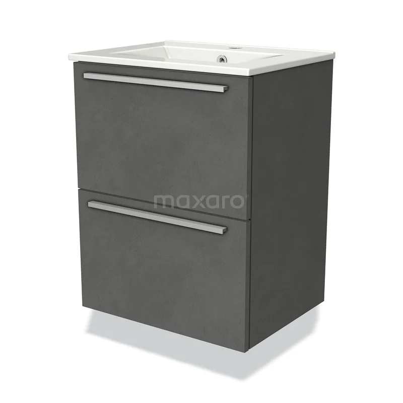 Badmöbel 50cm Modulo Slim Dunkelgrau Beton 2 Schubladen Flaches Waschbecken Keramik