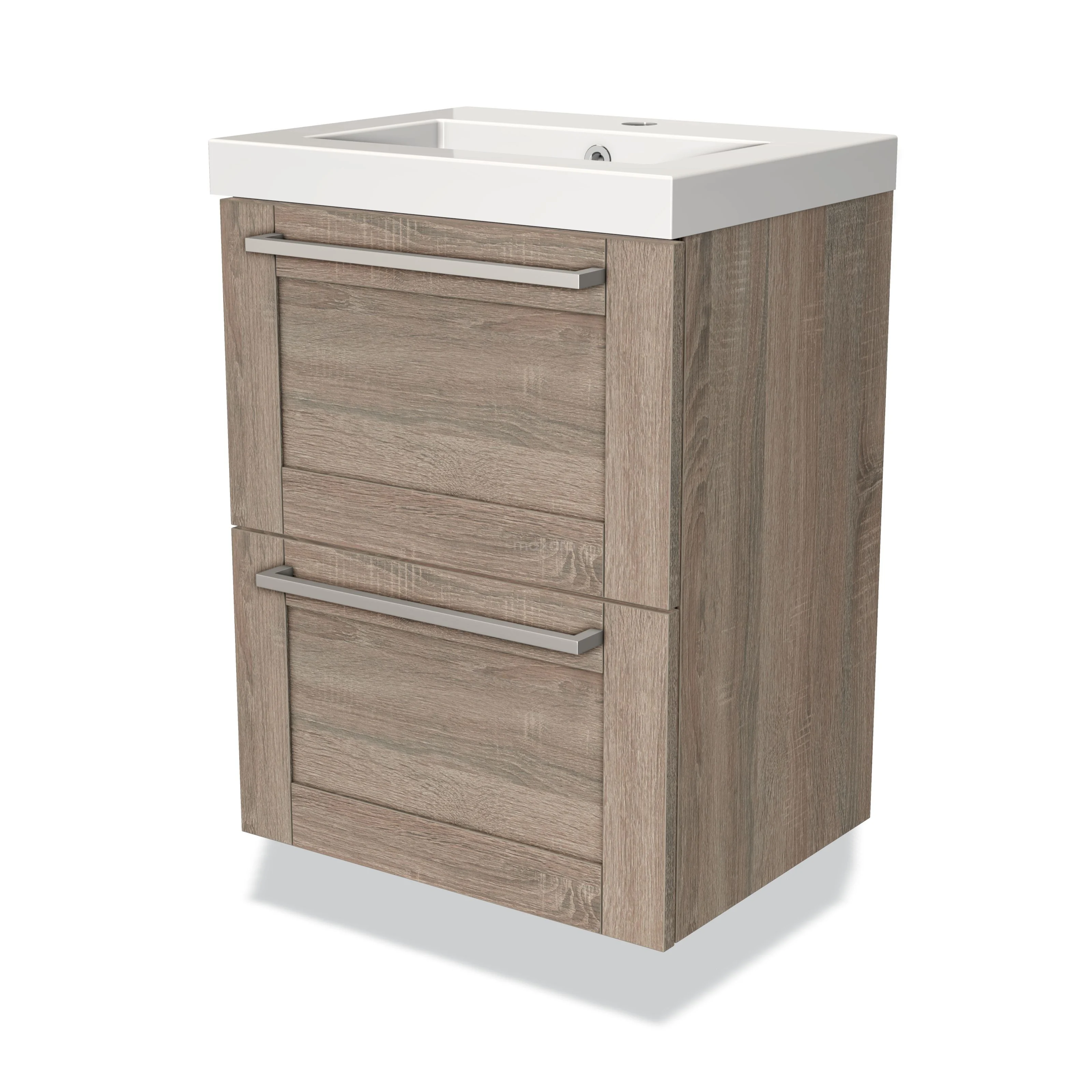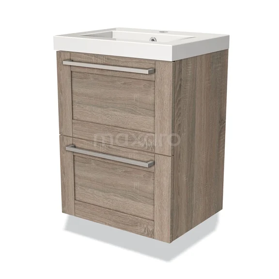 Badmöbel 50cm Modulo Slim Eiche 2 Schubladen Rahmen Waschbecken Mineralguss