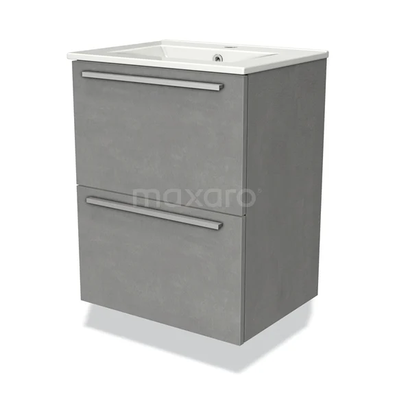 Badmöbel 50cm Modulo Slim Hellgrauer Beton 2 Schubladen Flaches Waschbecken aus Keramik