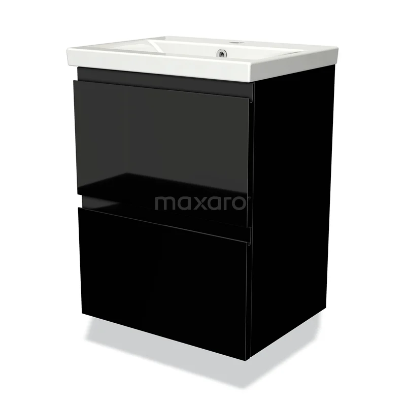 Badmöbel 50cm Modulo Slim Hochglanz Schwarz 2 Schubladen Griffloses Waschbecken Keramik