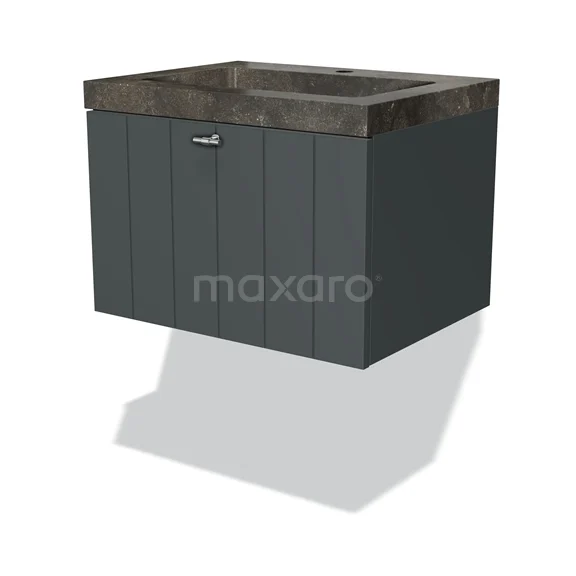 Badmöbel 60cm Modulo Dunkelgrau 1 Schubladen-Lamellen-Waschbecken aus Naturstein Blaustein