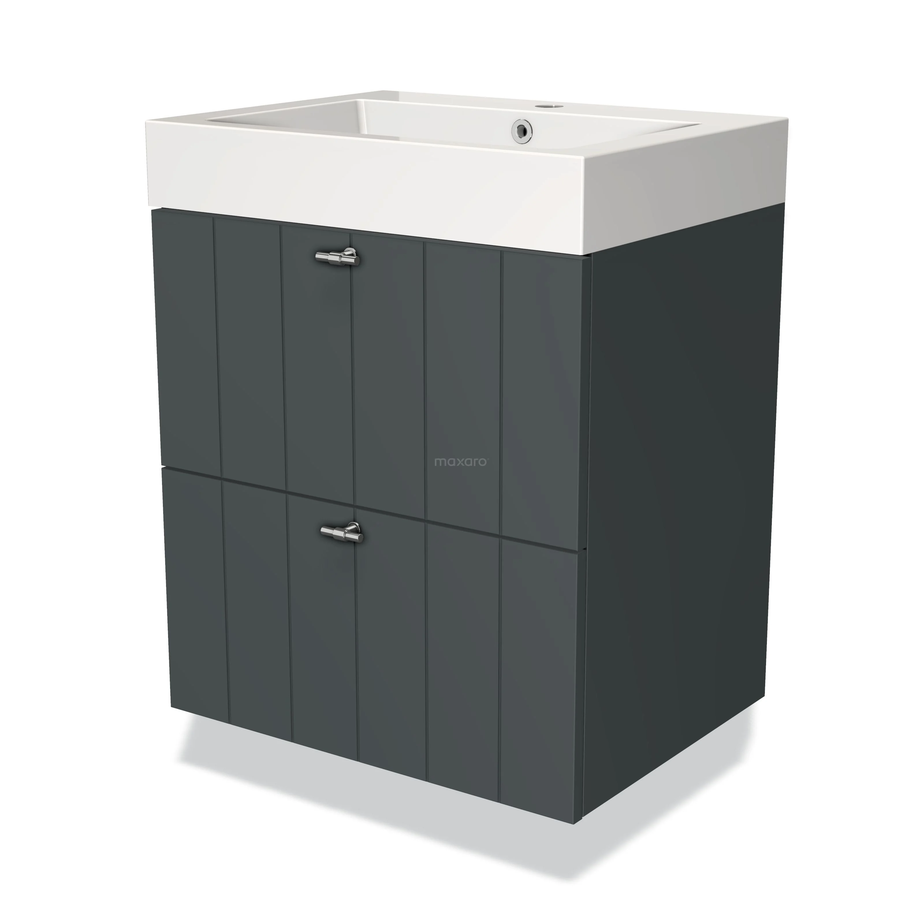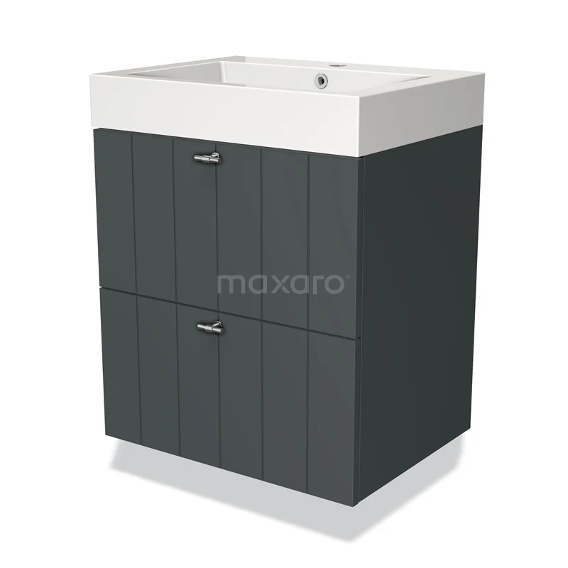 Badmöbel 60cm Modulo Dunkelgrau 2 Schubladen Lamellenwaschbecken Mineralguss