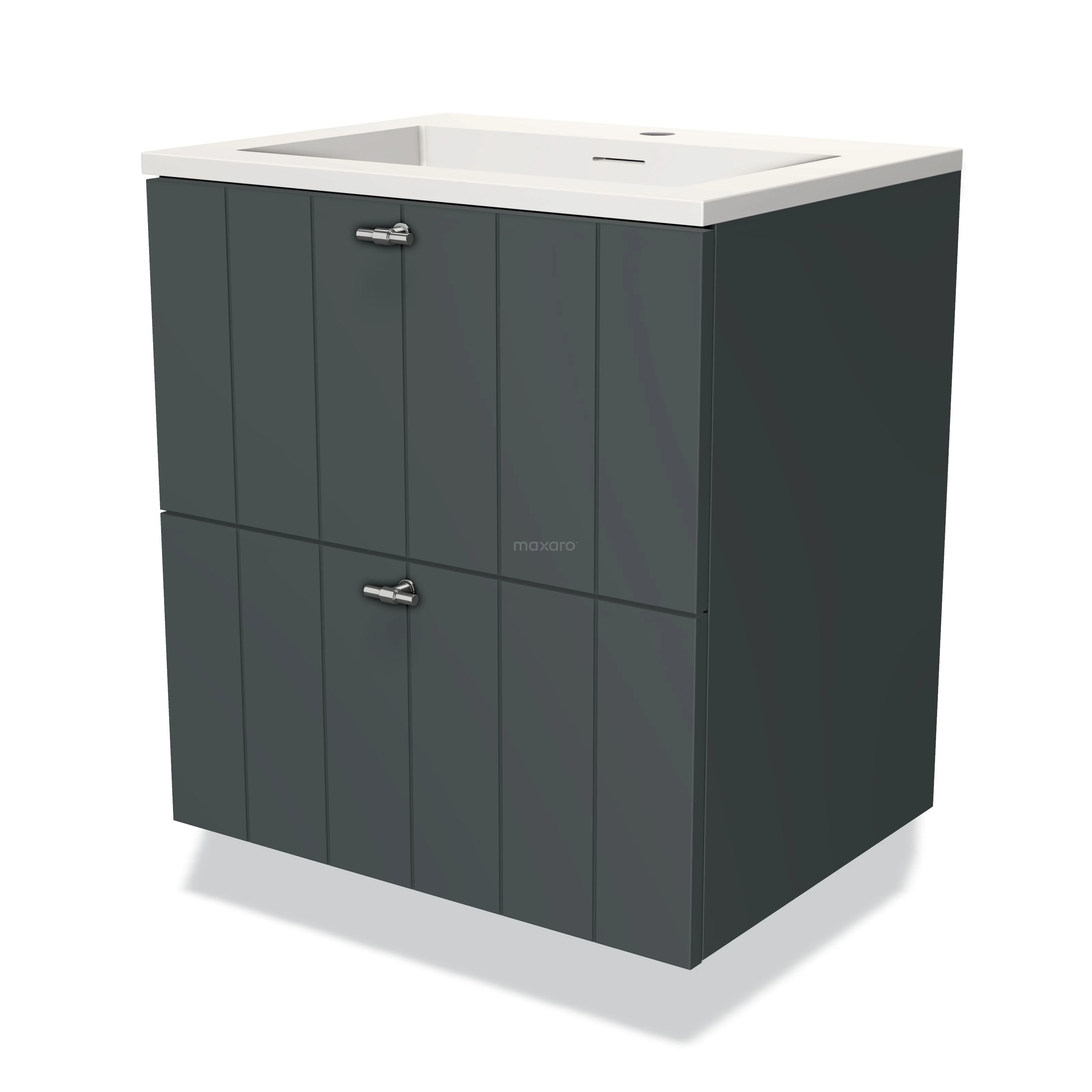 Badmöbel 60cm Modulo Dunkelgrau 2 Schubladen Lamellenwaschbecken Solid Surface