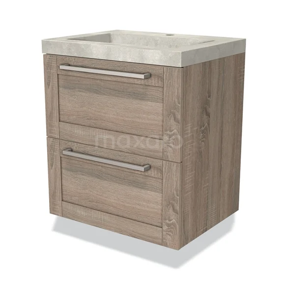 Badmöbel 60cm Modulo Eiche 2 Schubladen Rahmen Waschbecken Beton Greige