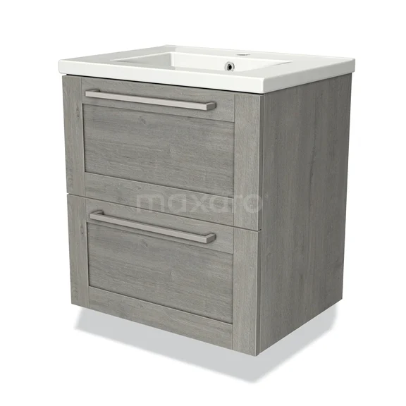 Badmöbel 60cm Modulo Graue Eiche 2 Schubladen Rahmen Waschbecken Keramik