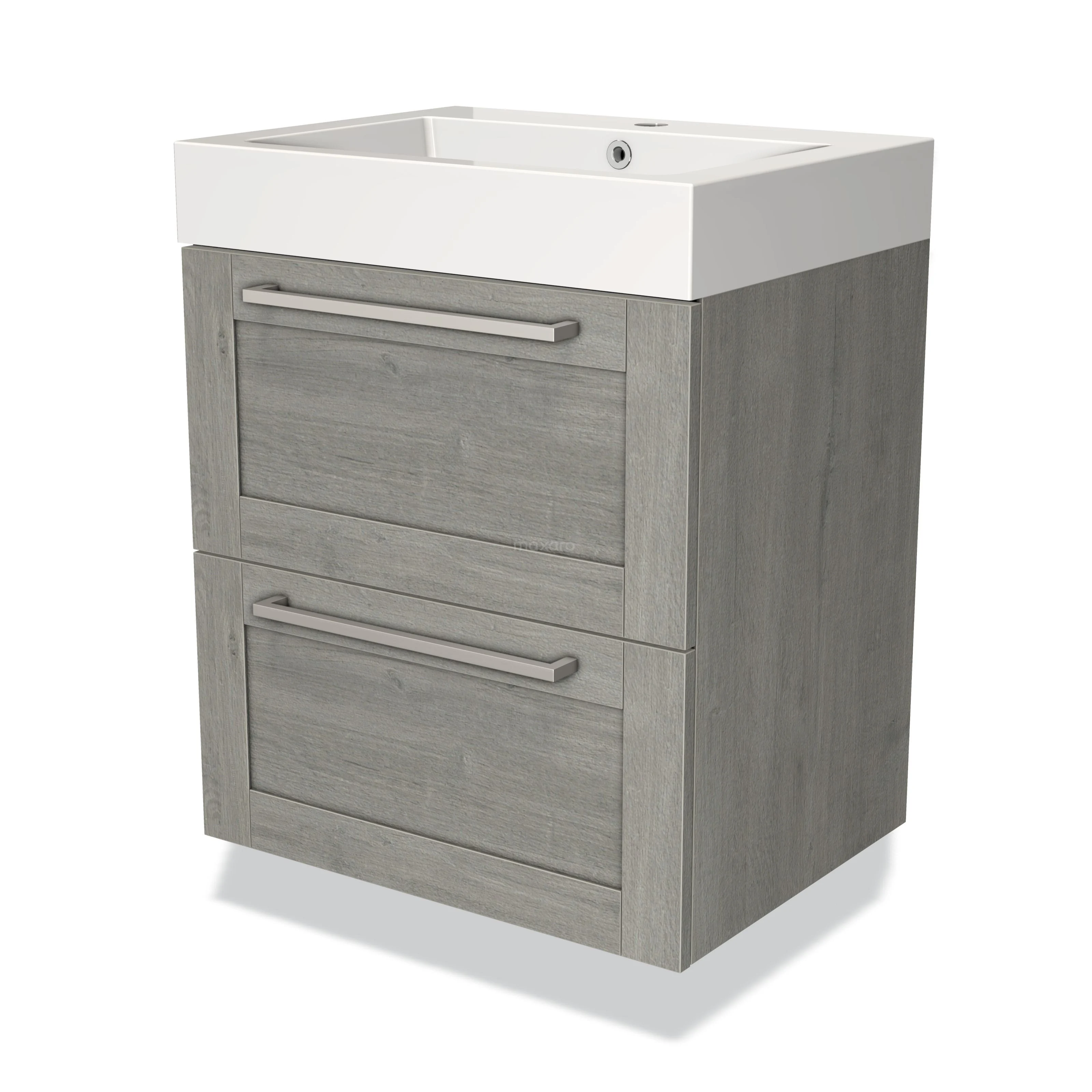 Badmöbel 60cm Modulo Graue Eiche 2-Schubladen-Rahmen Waschbecken Mineralguss Marmor