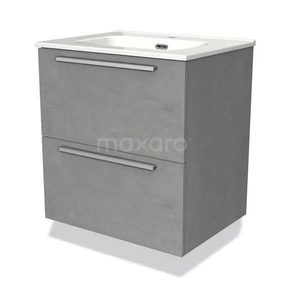 Badmöbel 60cm Modulo hellgrauer Beton 2 Schubladen Flaches Waschbecken aus Keramik