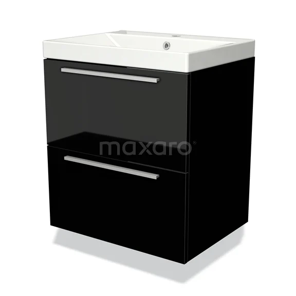 Badmöbel 60cm Modulo Hochglanz Schwarz 2 Schubladen Flaches Waschbecken Keramik