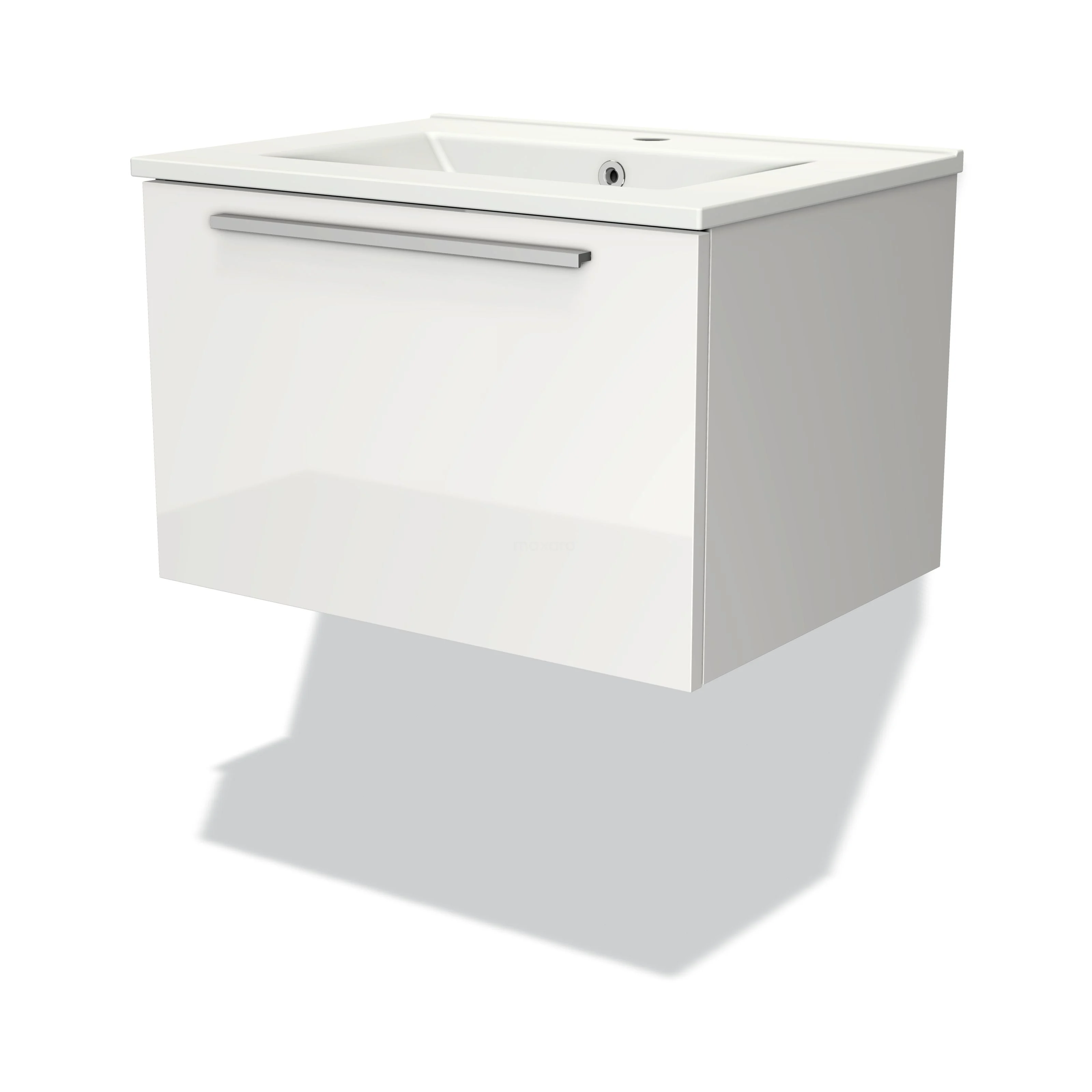 Badmöbel 60cm Modulo Hochglanz Weiß 1 Schublade Flaches Waschbecken aus Keramik