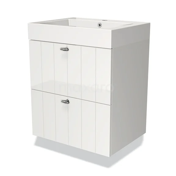 Badmöbel 60cm Modulo Hochglanz Weiß 2 Schubladen Lamellenwaschbecken Mineralguss