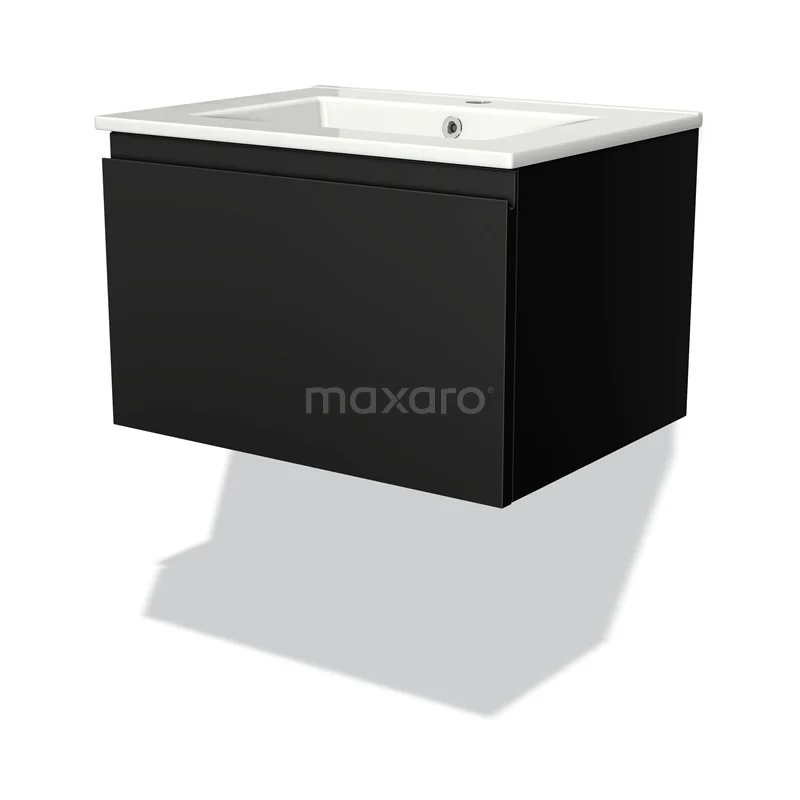 Badmöbel 60cm Modulo Matt Schwarz 1 Schublade griffloses Waschbecken aus Keramik