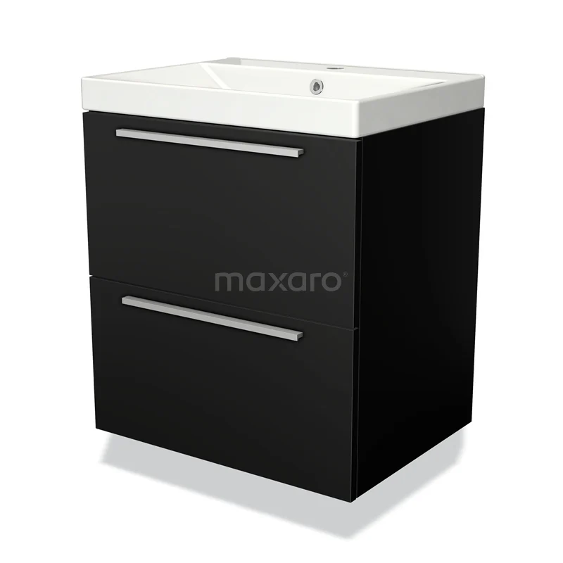 Badmöbel 60cm Modulo Matt Schwarz 2 Schubladen Flaches Waschbecken aus Keramik