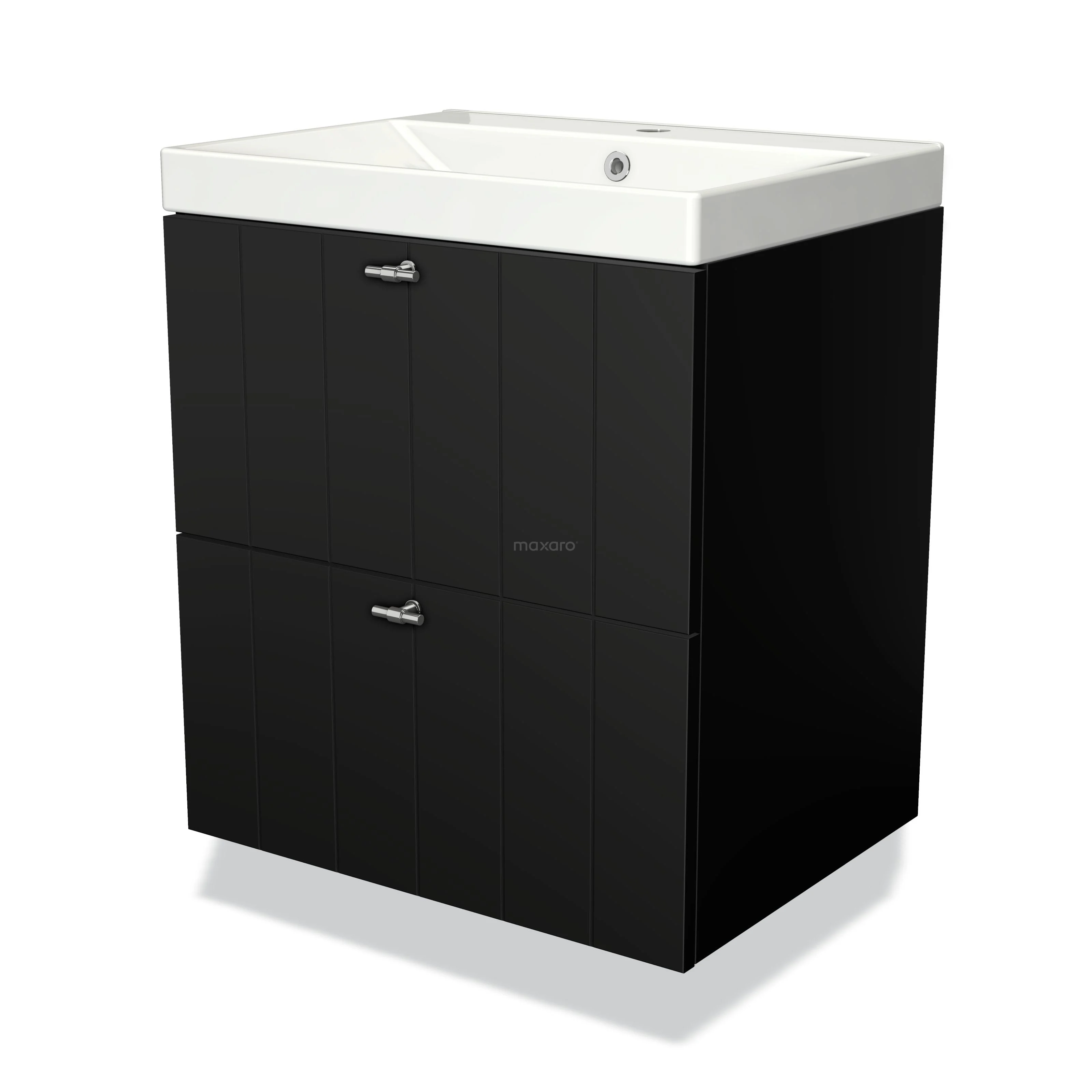Badmöbel 60cm Modulo Matt Schwarz 2 Schubladen Lamellenwaschbecken Keramik