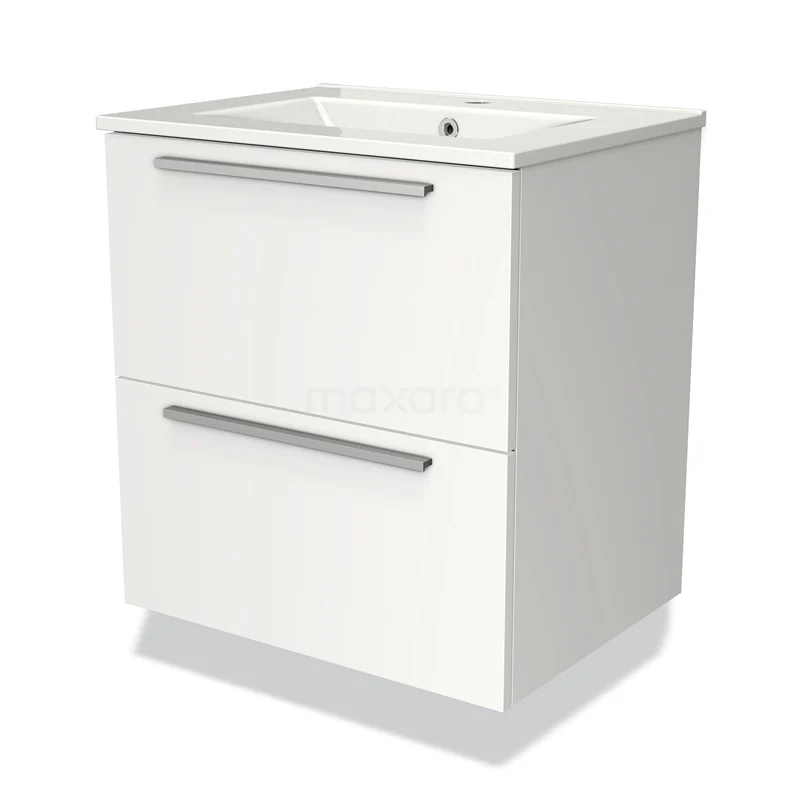 Badmöbel 60cm Modulo Matt Weiß 2 Schubladen Flaches Waschbecken aus Keramik