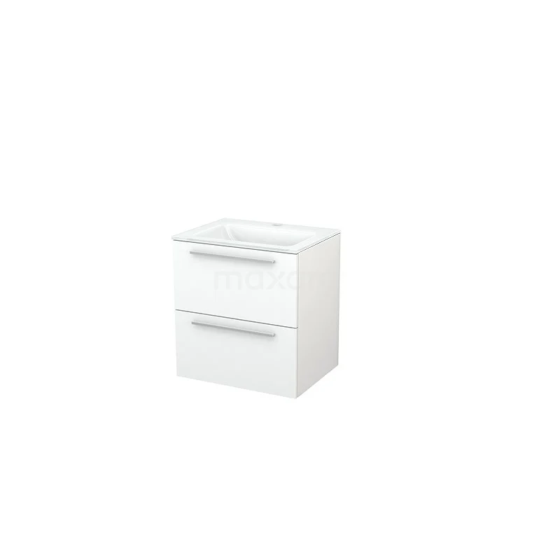 Modulo+ Waschtische | 60 cm Matt Weiß Flach front Glas 2 übereinanderliegende Schubladen