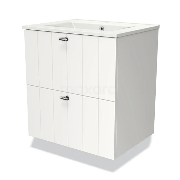 Badmöbel 60cm Modulo Matt Weiß 2 Schubladen Lamellenwaschbecken Keramik