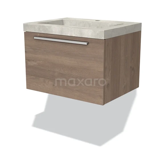 Badmöbel 60cm Modulo mittelbraune Eiche 1 Schublade Flaches Waschbecken Beton Greige