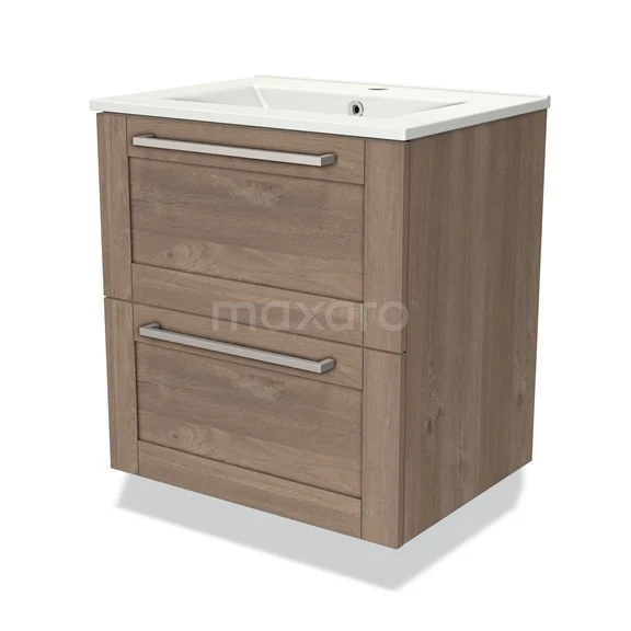 Badmöbel 60cm Modulo mittelbraune Eiche 2 Schubladen Rahmen Waschbecken Keramik