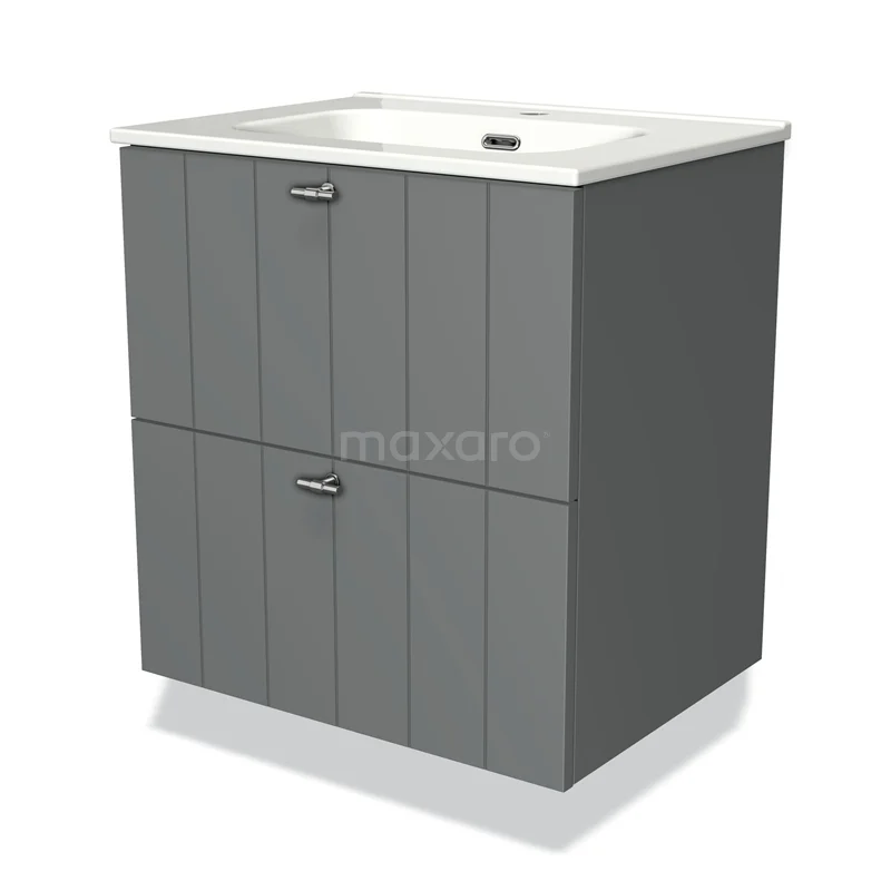 Badmöbel 60cm Modulo Mittelgrau 2 Schubladen Lamellenwaschbecken Keramik
