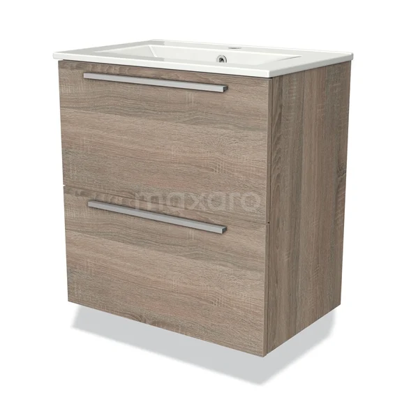 Badmöbel 60cm Modulo Slim Eiche 2 Schubladen Flaches Waschbecken aus Keramik