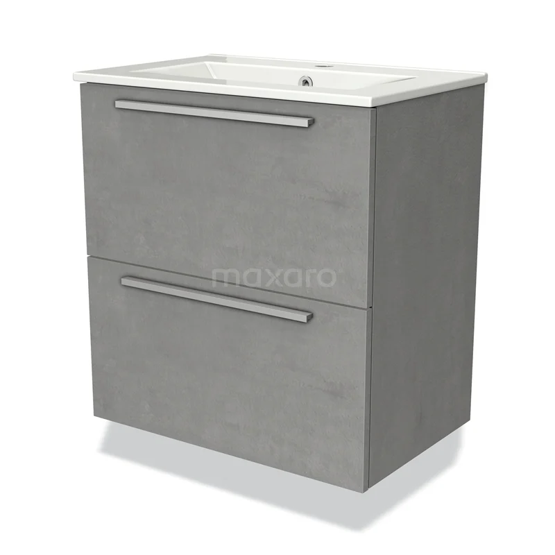 Badmöbel 60cm Modulo Slim Hellgrauer Beton 2 Schubladen Flaches Waschbecken aus Keramik