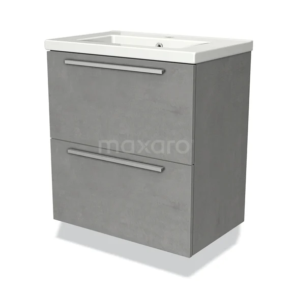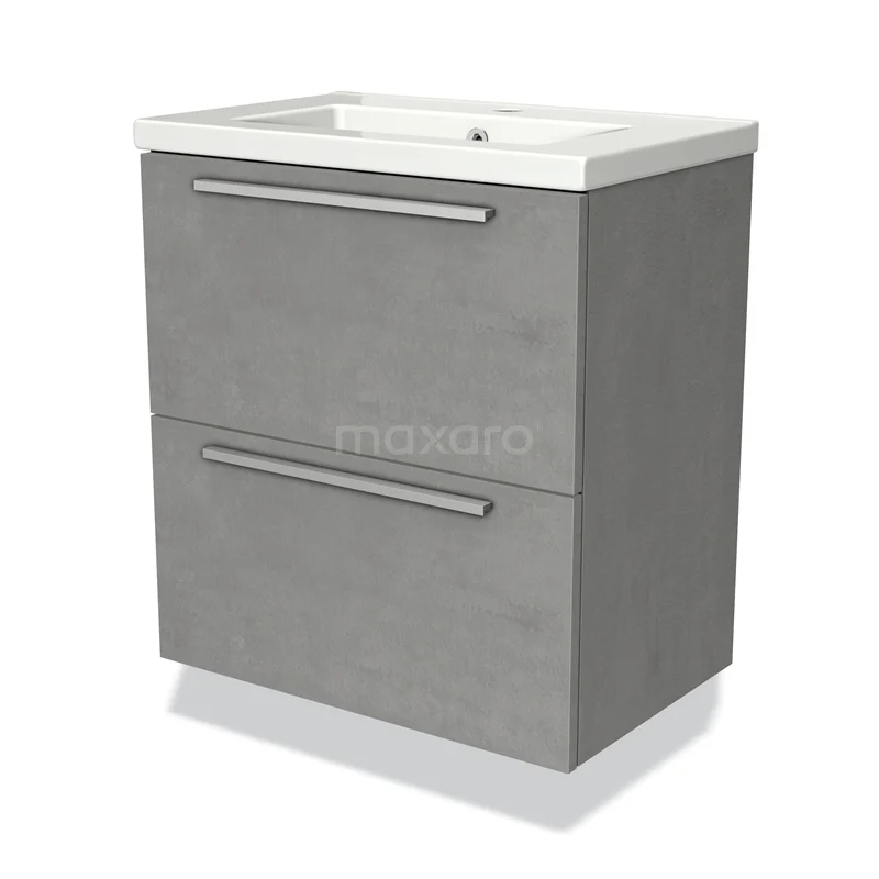 Badmöbel 60cm Modulo Slim Hellgrauer Beton 2 Schubladen Flaches Waschbecken aus Keramik