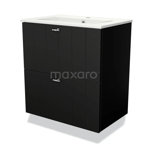 Badmöbel 60cm Modulo Slim Matt Schwarz 2 Schubladen Lamellenwaschbecken Keramik