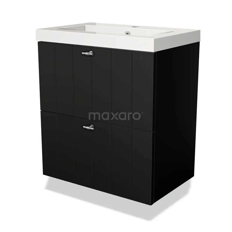 Badmöbel 60cm Modulo Slim Matt Schwarz 2 Schubladen Slat Waschbecken Mineralguss