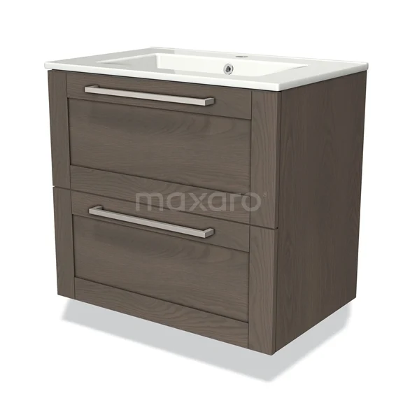 Badmöbel 70cm Modulo dunkelbraune Eiche 2 Schubladen Rahmen Waschbecken Keramik