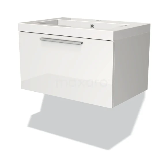 Badmöbel 70cm Modulo Hochglanz Weiß 1 Schublade Flaches Waschbecken Mineralguss