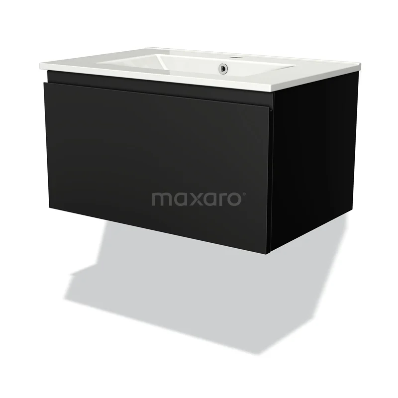 Stilvolles Design Das stilvolle Design macht diesen Badmöbel zum Blickfang in Ihrem Badezimmer. Der Unterschrank verfügt über eine grifflose Front und hat eine matte Oberfläche in Schwarz. Diese Farbe bietet eine schöne Grundlage für eine industrielle Einrichtung und ist ideal, um einen Kontrast im Raum zu schaffen. Außerdem sorgt die grifflose Front für einen eleganten Touch.