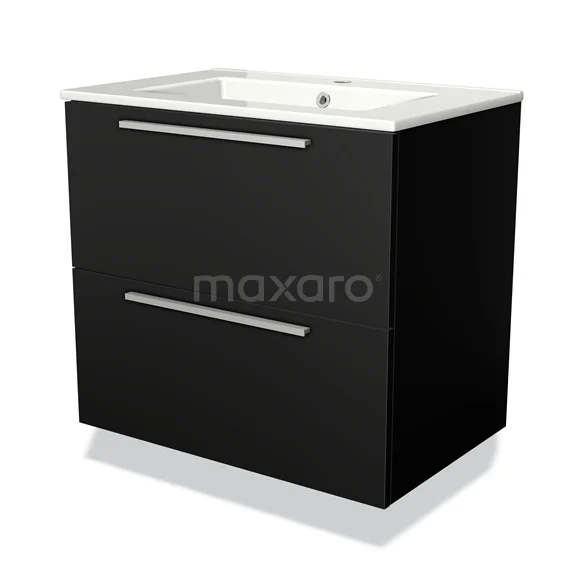 Badmöbel 70cm Modulo Matt Schwarz 2 Schubladen Flaches Waschbecken aus Keramik