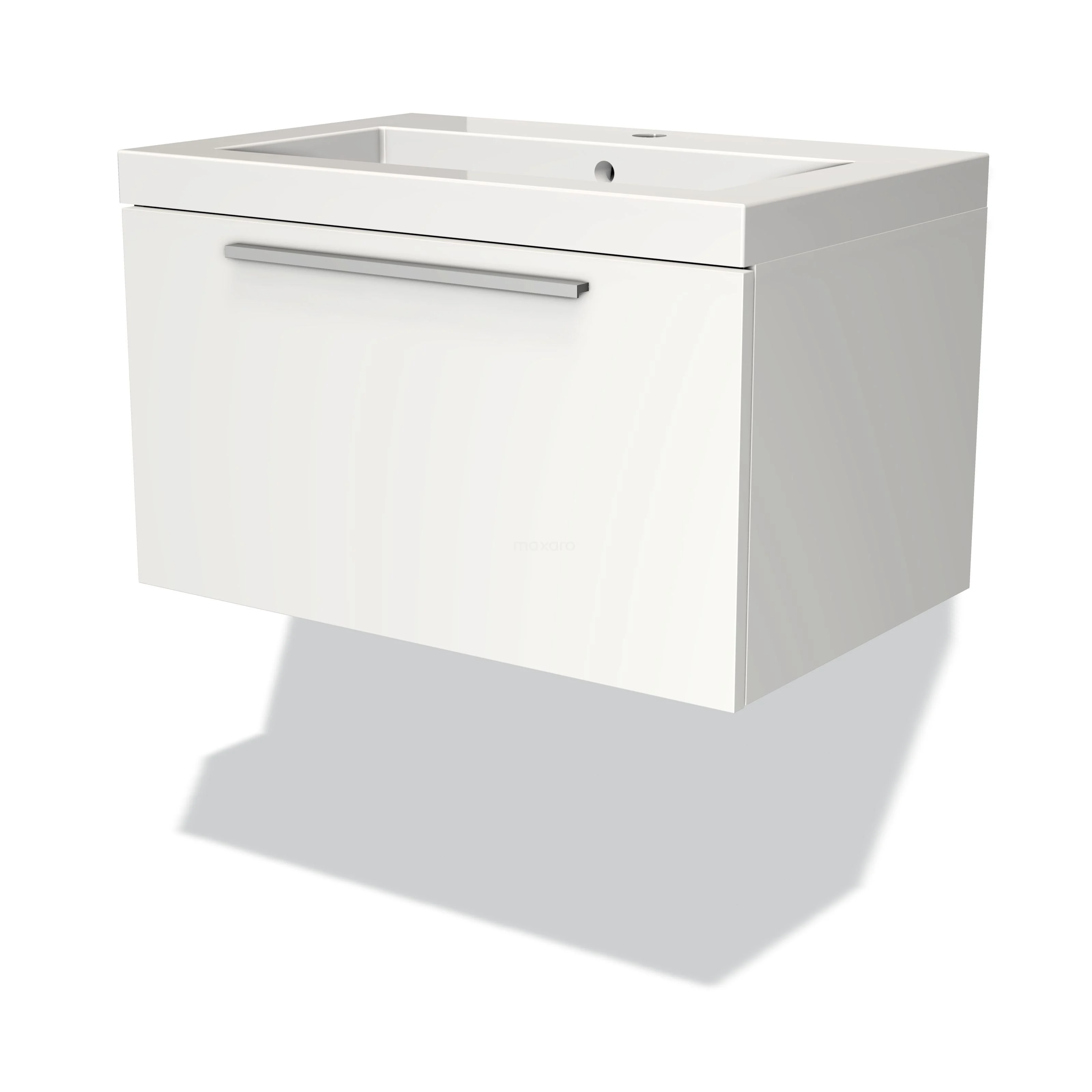 Badmöbel 70cm Modulo Matt Weiß 1 Schublade Flaches Waschbecken Mineralguss