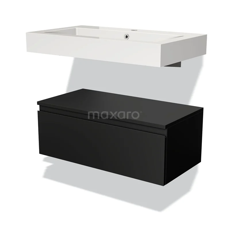 Stilvolles Design Das stilvolle Design macht dieses Badmöbel zum Blickfang in Ihrem Badezimmer. Der Möbel verfügt über eine grifflose Front und ist in Matt Schwarz gehalten. Diese Farbe bietet eine schöne Grundlage für eine industrielle Einrichtung und ist ideal, um einen Kontrast im Raum zu schaffen. Außerdem sorgt die grifflose Front für einen eleganten Touch.
