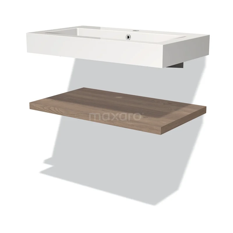 Stylisches Design Dank seines schönen Designs wird dieses Badmöbel zum Blickfang in Ihrem Badezimmer. Die Waschtischplatte ist in mittelbrauner Eiche ausgeführt. Diese Eichenoptik wirkt natürlich und schafft eine warme Atmosphäre in Ihrem Badezimmer. Zusätzlich sorgt das weiße Waschbecken für einen frischen Touch.